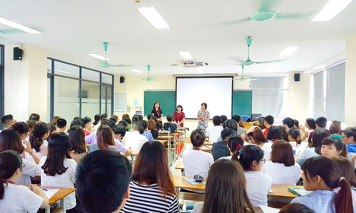 PGS. TS. Đào Thị Thu Giang - Phó Hiệu trưởng nhà Trường (giữa); TS. Bùi Liên Hà - Phó Phòng QLĐT (trái); Ths. Nguyễn Ngọc Lan - Trưởng phòng CTCTSV (phải)