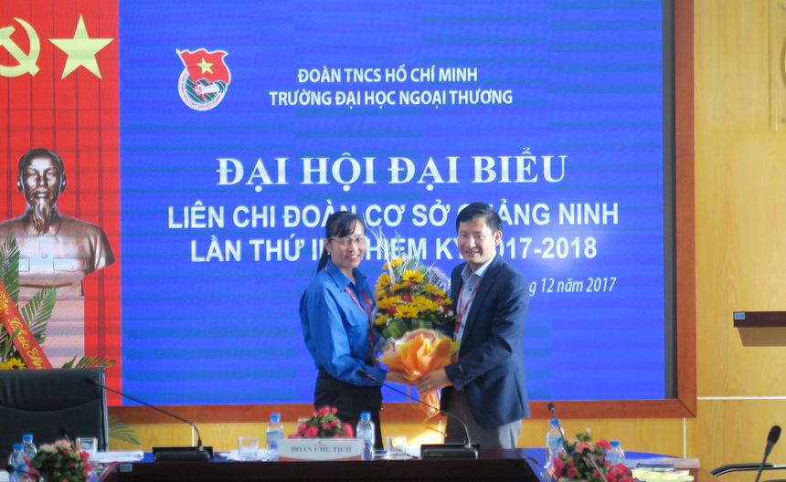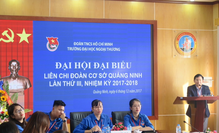Thay mặt Cơ sở Quảng Ninh, TS. Nguyễn Phúc Hiền đã biểu dương những thành tích và sự phát triển của công tác đoàn trong nhiệm kỳ vừa qua. Trong nhiệm kỳ 2017-2018, Đoàn thanh niên cần tiếp tục đồng hành với Cơ sở trong việc thực hiện các nhiệm vụ chính trị, công tác xã hội, đào tạo nhân lực… Nhà trường luôn sẵn sàng tạo điều kiện cho các hoạt động của Đoàn Thanh niên.