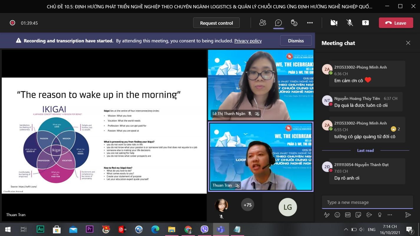 Tiếp nối thành công của 4 buổi tọa đàm trước về chuyên ngành Tài chính, Quản trị kinh doanh, Kinh tế đối ngoại và Kế toán – Kiểm toán, ngày 16/10/2021, Cơ sở II tại TP. HCM đã tiếp tục tổ chức buổi tọa đàm dành riêng cho các tân sinh viên K60 chuyên ngành Logistics và quản lý chuỗi cung ứng với sự tham gia của 2 diễn giả gồm: ThS Lê Thị Thanh Ngân - Giảng viên môn Logistics và vận tải quốc tế cùng anh Trần Vĩnh Thuận - Cựu sinh viên K53, Giám đốc dịch vụ khách hàng công ty Maersk Vietnam.