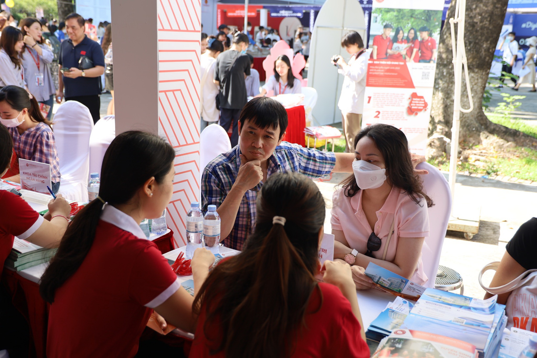 Gian trại tư vấn của trường ĐH Ngoại thương đã thu hút hàng trăm phụ huynh, học sinh tới tham quan, tìm hiểu. Các thầy cô giáo là cán bộ, giảng viên của Nhà trường đã cung cấp những thông tin rất hữu ích cho các em học sinh, đưa ra những tư vấn cụ thể cho các em trong việc chọn ngành học, giới thiệu về các chương trình mới của Nhà trường đồng thời giúp cho các em cái nhìn tổng quan nhất về môi trường học tập tại trường.