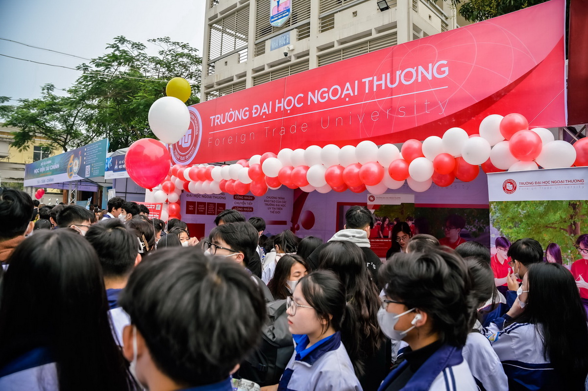 Nhiều em học sinh và phụ huynh đã đến tìm hiểu thông tin các phương thức xét tuyển, các chương trình đào tạo, ngành đào tạo tại Gian tư vấn tuyển sinh của Trường ĐH Ngoại thương. Tại đây, các em đã được lắng nghe tư vấn trực tiếp từ các thầy cô giáo của nhà trường trong việc chọn ngành học, giới thiệu về các phương thức tuyển sinh của Nhà trường đồng thời giúp cho các em cái nhìn tổng quan nhất về môi trường học tập tại Trường ĐH Ngoại thương.