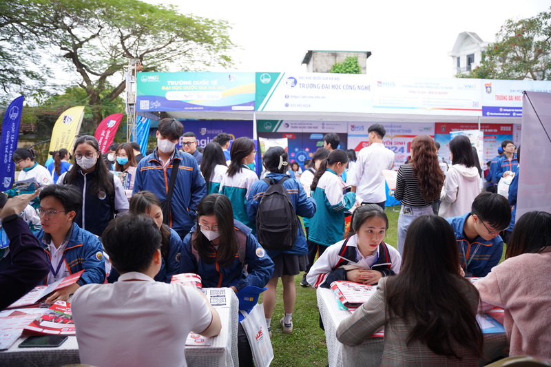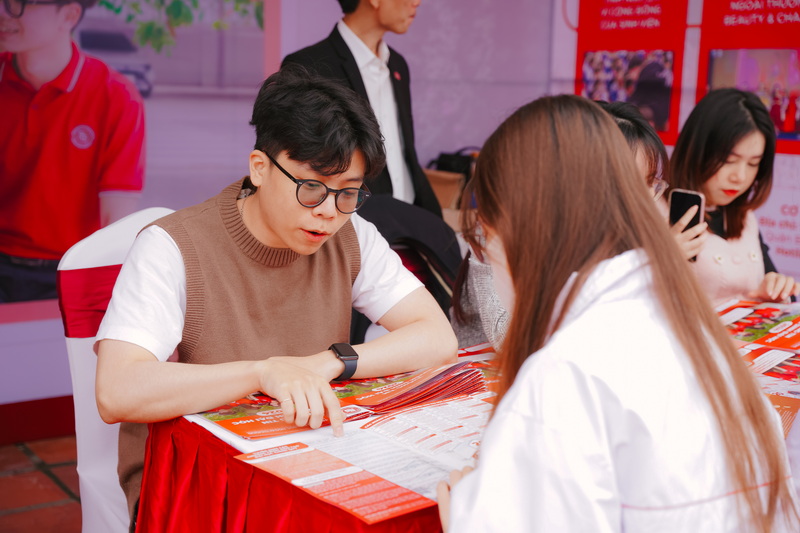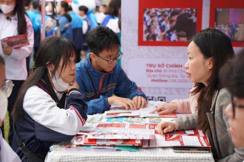 Tại các gian tư vấn tuyển sinh - hướng nghiệp của Trường ĐH Ngoại thương, các em học sinh cùng phụ huynh đã được lắng nghe tư vấn trực tiếp từ các thầy cô giáo của nhà trường trong việc chọn ngành học, giới thiệu về các phương thức tuyển sinh của Nhà trường đồng thời giúp cho các em cái nhìn tổng quan về môi trường học tập tại trường.