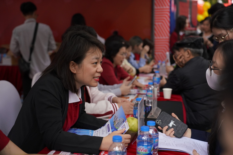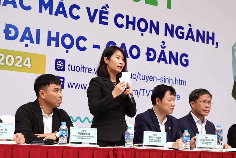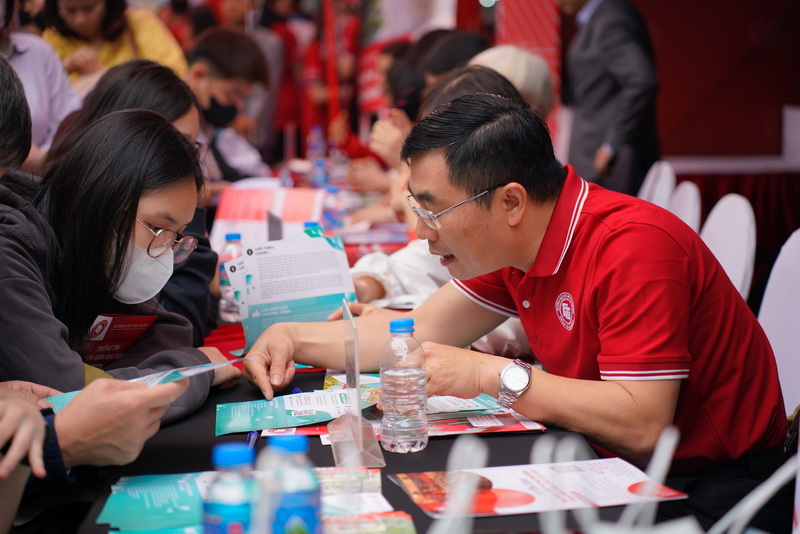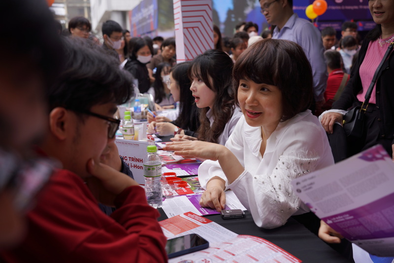 Đại diện Lãnh đạo Nhà trường, PGS, TS Vũ Thị Hiền đã tham gia Hội đồng tư vấn trực tiếp tại ngày hội và giải đáp những câu hỏi, thắc mắc cũng như tư vấn cho các bạn học sinh về các vấn đề liên quan tới các phương thức tuyển sinh năm 2024 của Nhà trường, cách thức đăng ký xét tuyển, các chương trình đào tạo mới, tư vấn chọn ngành, chọn nghề, định hướng nghề nghiệp phù hợp với năng lực, sở thích, các hoạt động ngoại khóa. Trả lời thắc mắc của một phụ huynh tại chương trình, PGS, TS Vũ Thị Hiền chia sẻ, “Việc chọn ngành, chọn nghề, liên quan đến cả một tương lai rất dài. Lời khuyên là nên cho chính bản thân mình nhiều cơ hội. Chúng ta phải tạo ra nhiều năng lực cốt lõi, có nghĩa không nên chỉ học một ngành duy nhất mà nên học cách tiếp cận liên ngành. Học kinh tế nhưng các em có thể học thêm luật, hay khoa học dữ liệu dưới nhiều hình thức, không nhất thiết phải có thêm một tấm bằng nữa nhưng cần có một khối lượng kiến thức đủ lớn để có cơ hội ứng phó rất tốt trong tương lai. Do vậy, “ngành VIP” hay “ngành hot” phụ thuộc vào chính chúng ta. Nếu giỏi trong một lĩnh vực nào đó, đẩy năng lực mình lên tới một mức rất cao thì việc kiếm việc làm, đạt được mức lương theo khái niệm “VIP” hay “hot” là không khó khăn”.