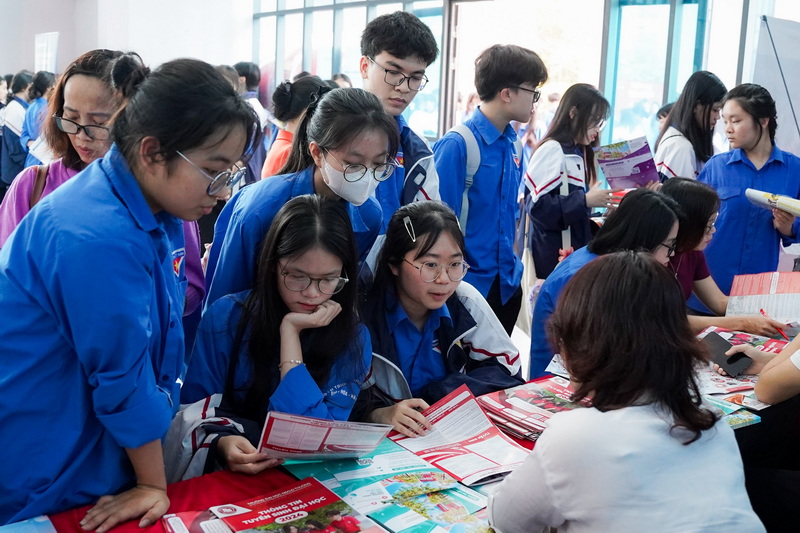 Tại các gian tư vấn tuyển sinh - hướng nghiệp của Trường ĐH Ngoại thương, các em học sinh cùng phụ huynh đã được lắng nghe tư vấn trực tiếp từ các thầy cô giáo của nhà trường trong việc chọn ngành học, giới thiệu về các phương thức tuyển sinh của Nhà trường đồng thời giúp cho các em cái nhìn tổng quan về môi trường học tập tại trường.