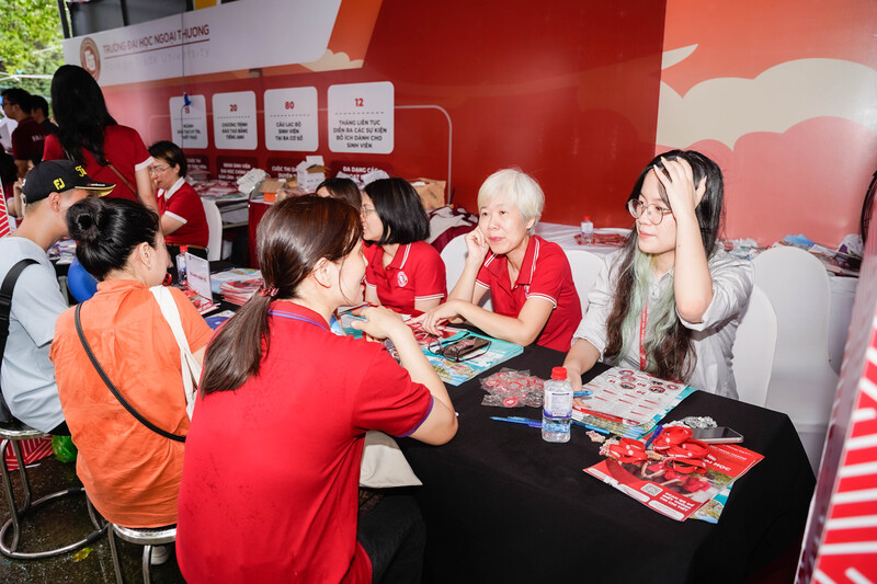 Gian trại tư vấn của trường ĐH Ngoại thương đã thu hút đông đảo phụ huynh và học sinh tới tham quan và tìm hiểu. Các giảng viên, cán bộ Nhà trường cùng các em sinh viên đến từ CLB Diễn đàn sinh viên Trường ĐH Ngoại thương cũng như các Khoa/ Viện đã nhiệt tình hướng dẫn, tư vấn, định hướng đồng thời cung cấp những thông tin hữu ích giúp các em lựa chọn ngành học, phương án đăng ký xét tuyển phù hợp. Ngoài ra, các thầy cô còn giới thiệu về các chương trình đào tạo mới của trường, giúp các em có cái nhìn tổng quan về môi trường học tập tại đại học.