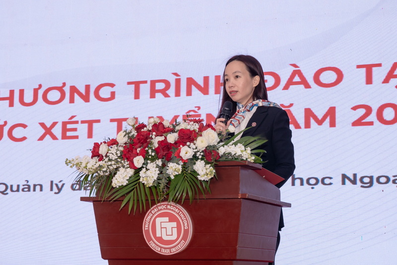 Tiếp nối chương trình, ThS Phạm Thanh Hà - Phó Trưởng Phòng Phụ trách Phòng Quản lý đào tạo đã giới thiệu tổng quan về các chương trình đào tạo cũng như các phương thức xét tuyển năm 2025 của Trường ĐH Ngoại thương.