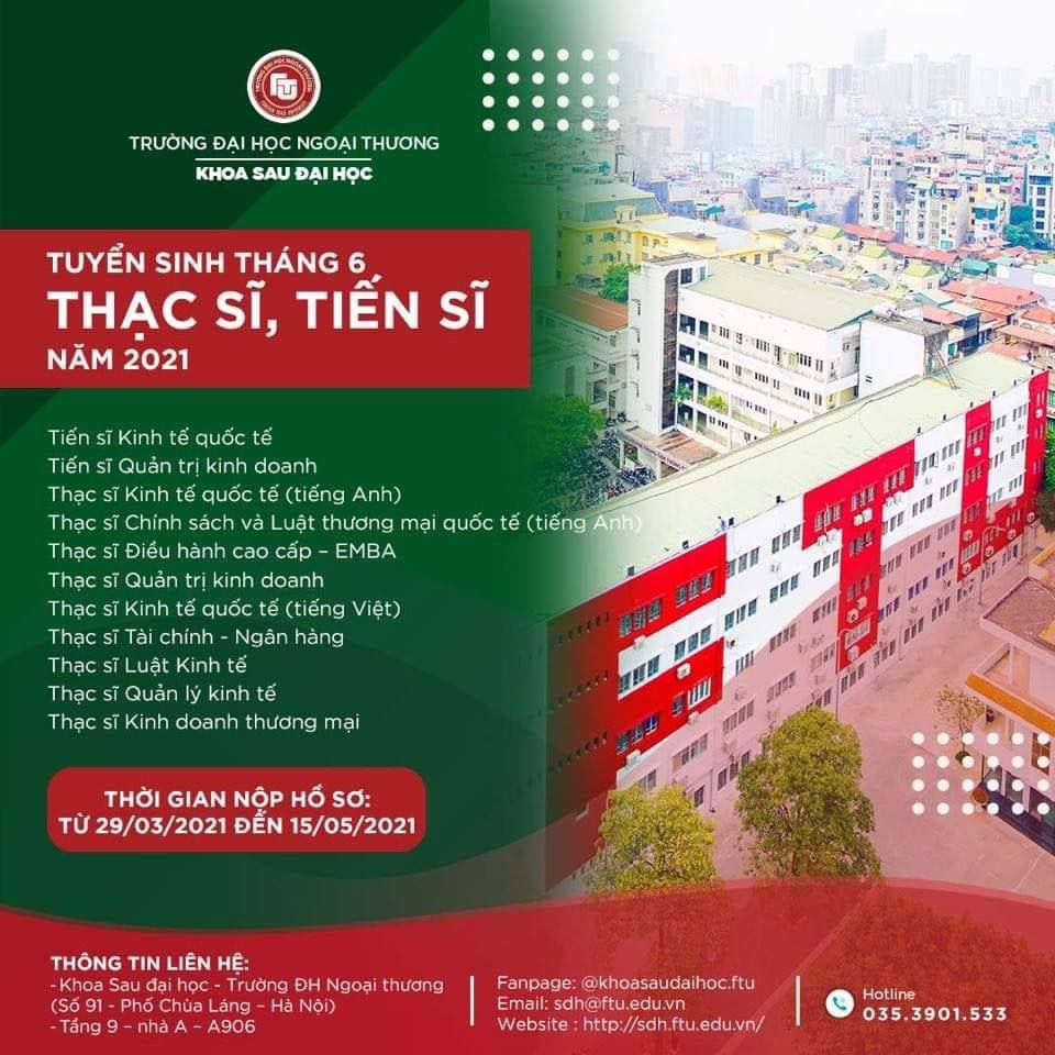 Mọi thông tin chi tiết xem tại: http://sdh.ftu.edu.vn/thong-bao-tuyen-sinh-dao-tao-trinh.../