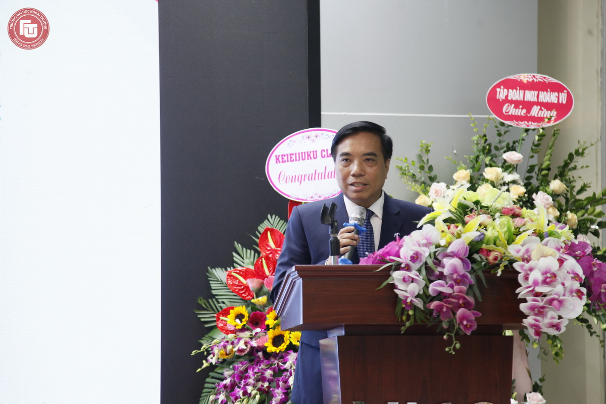 Phát biểu khai giảng, PGS, TS Bùi Anh Tuấn - Hiệu trưởng Nhà trường gửi lời chúc mừng và thông điệp đặc biệt tới các học viên là các nhà lãnh đạo, quản lý doanh nghiệp cùng thầy cô cán bộ, giảng viên trường ĐHNT đã trúng tuyển vào chương trình Keieijuku khóa 14 năm nay. PGS, TS Bùi Anh Tuấn bày tỏ sự vui mừng với sự thành công của VJCC, đặc biệt với chương trình Keieijuku. Đối với các tân học viên, thầy nhấn mạnh rằng, thông qua chương trình Keieijuku, các học viên sẽ được học không chỉ triết lý kinh doanh mà cả cách thức kinh doanh thành công của người Nhật Bản, áp dụng vào doanh nghiệp mình trong môi trường kinh doanh của Việt Nam hiện nay, góp phần đẩy mạnh tiến trình hội nhập quốc tế của các doanh nghiệp.