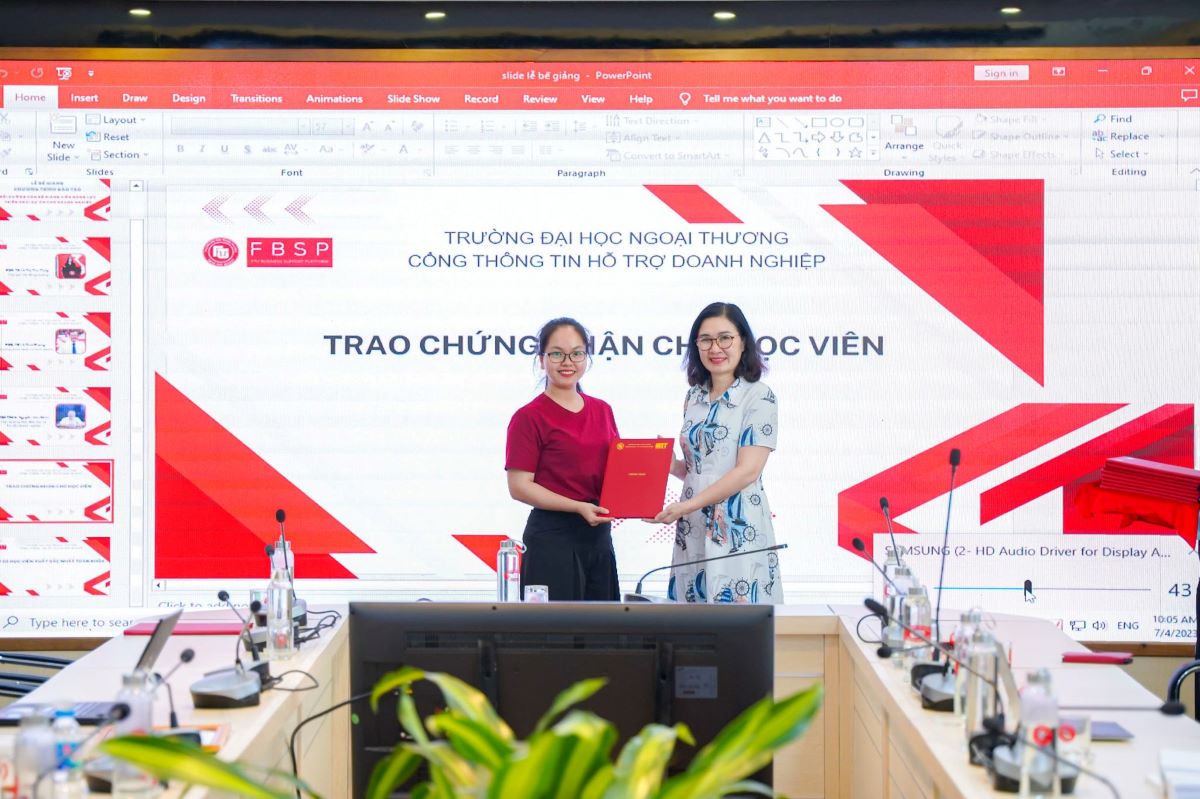 PGS, TS Lê Thị Thu Thủy đã đại diện lãnh đạo Nhà trường trao chứng chỉ cho từng học viên của Khóa học.
