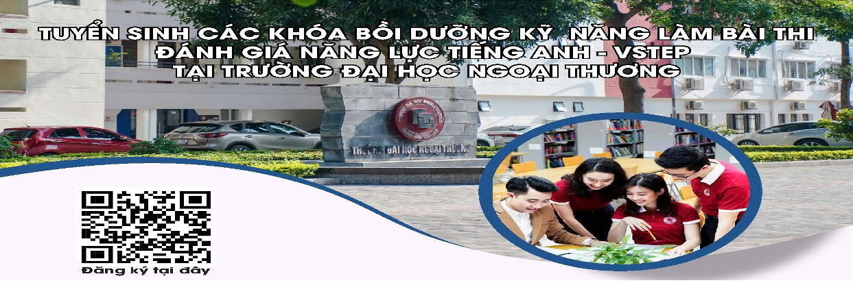 Trường Đại học Ngoại thương thông báo tổ chức các khóa học bồi dưỡng kỹ năng làm bài thi đánh giá năng lực tiếng Anh dành cho đối tượng sinh viên, học viên cao học, nghiên cứu sinh và các đối tượng khác có nhu cầu bổ sung kỹ năng, kiến thức phục vụ việc tham dự kỳ thi đánh giá năng lực tiếng Anh bậc 3 và bậc 4 theo Khung Năng lực Ngoại ngữ (NLNN) 6 bậc dùng cho Việt Nam.