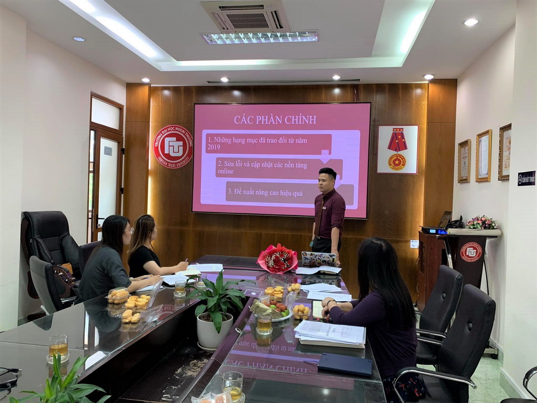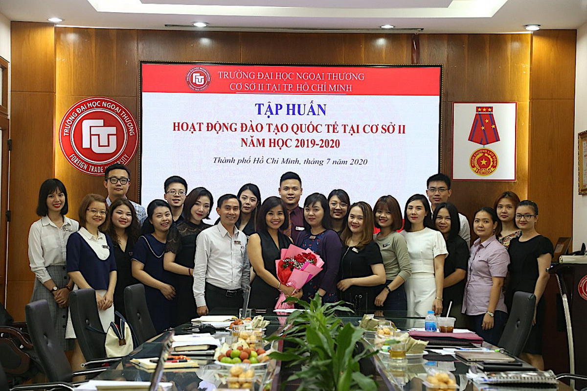 Công tác quản lý sinh viên, chương trình và làm việc với đối tác nước ngoài của các chương trình quốc tế, vì vậy cũng chuyển sang hình thức trực tuyến, nhưng vẫn phải đảm bảo chất lượng theo đúng các yêu cầu của đối tác nước ngoài. Với mục đích đồng bộ hóa các giao diện truyền thông và đảm bảo tính thống nhất trong quy trình quản lý hồ sơ, sinh viên và các chương trình đào tạo quốc tế, ngày 03/07/2020, Đoàn cán bộ Khoa Đào tạo Quốc tế đã có chuyến công tác và làm việc với các cán bộ phụ trách của Ban Đào tạo Quốc tế và trung tâm Tư vấn Thương mại Quốc tế ICCC, Cơ sở 2 tại TP. HCM.
