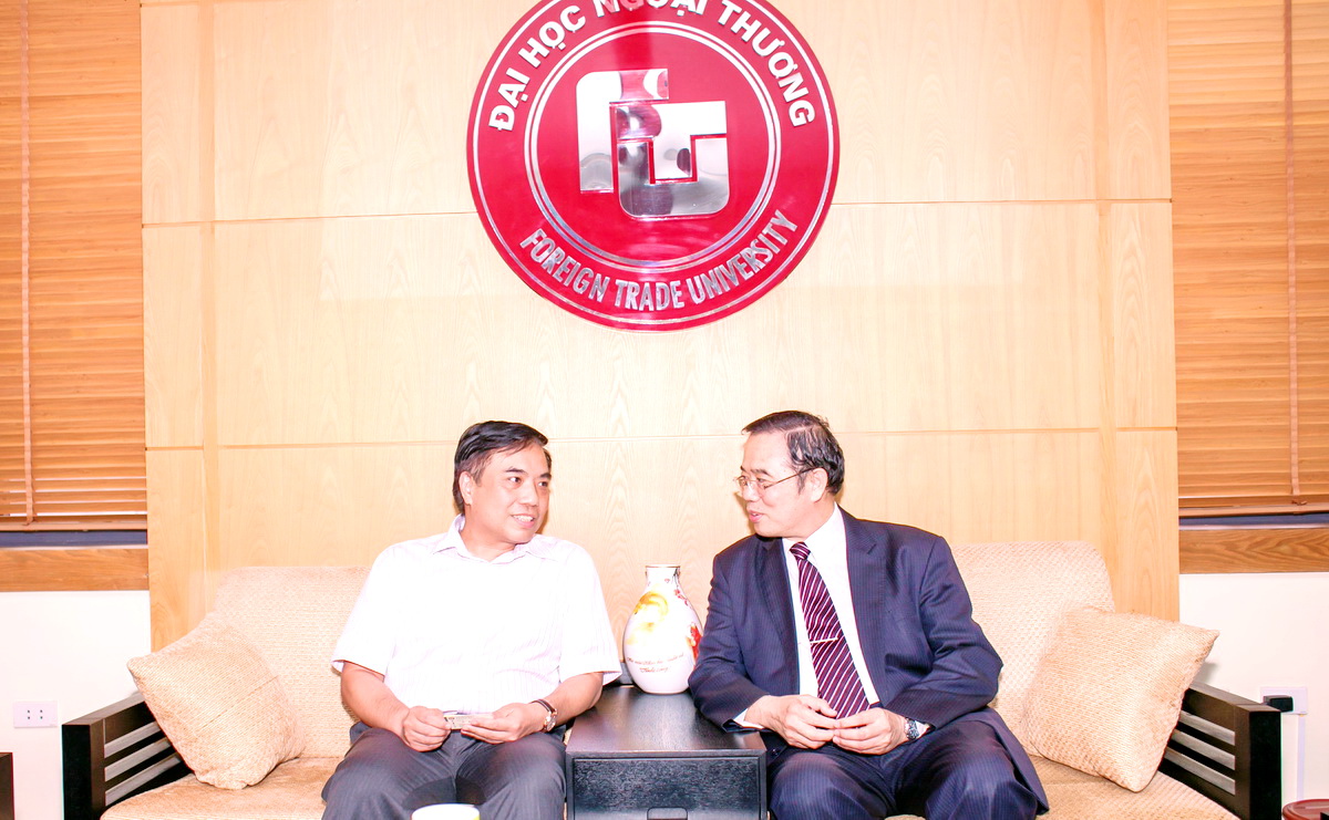 PGS, TS Bùi Anh Tuấn – Hiệu trưởng trường ĐH Ngoại thương và GS Wu Wann Yi – Phó Hiệu trưởng trường ĐH Nam Hoa có buổi gặp gỡ thân mật trước buổi lễ